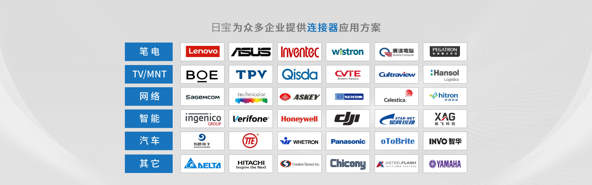 深圳市日寶電子科技有限公司創(chuàng)立于2015年,總部位于蘇州吳江區(qū),總部公司成立于2005年,是一家專業(yè)從事精密連接器設(shè)計、制造及銷售的高新科技企業(yè)。產(chǎn)品廣泛應(yīng)用于消費電子、汽車電子、網(wǎng)絡(luò)通訊及工業(yè)電子設(shè)備、軍工、航天航空、醫(yī)療器械等領(lǐng)域。目前公司產(chǎn)品除本土市場外,更遠銷歐、美、日等海外市場。 日寶電子注重長遠發(fā)展,先后取得ISO9001/14001質(zhì)量與環(huán)境管理體系、IATF16949汽車質(zhì)量管理體系、ISO13485醫(yī)療器械質(zhì)量管理體系、UL,GB/T29490知識產(chǎn)權(quán)管理體系等認證, 并加入HDMI、USB等協(xié)會。 為提升企業(yè)核心競爭力,公司大力推進信息化與工業(yè)化的兩化融合建設(shè),先后導(dǎo)入ERP、PLM、CRM、SRM、MES及OA等系統(tǒng)管理軟件,不斷自我提升,為打造新一代智能制造標桿企業(yè)不懈努力。 日寶電子擁有業(yè)界專業(yè)的電氣與機構(gòu)研發(fā)技術(shù)團隊,相繼獲得260余項發(fā)明和實用新型專利,在這日新月異的科技時代,堅持以技術(shù)創(chuàng)新為導(dǎo)向,深度服務(wù)客戶...